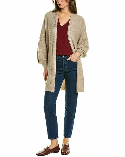 - Bubble Sleeve Cardigan in oatmeal with dropped-shoulders