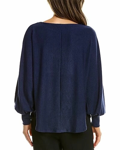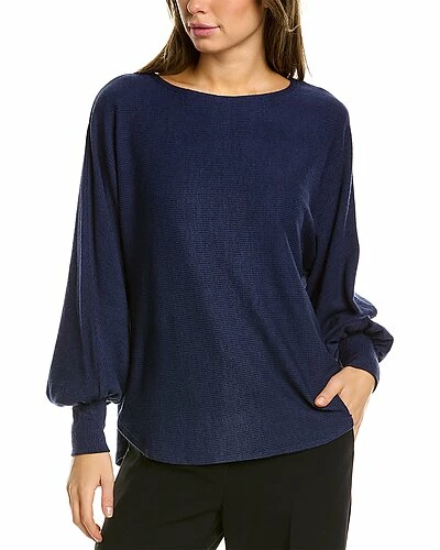 - Bubble Sleeve Top in sapphire with scoop neck, ribbed knit design, and rounded hem