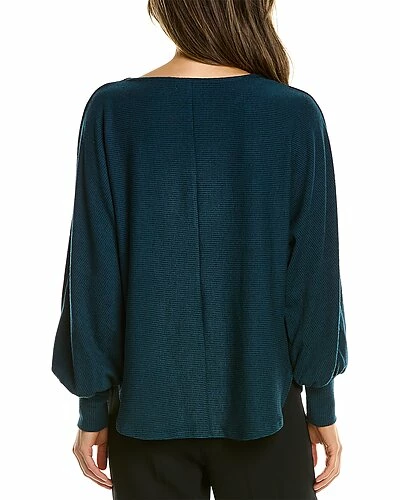 - Bubble Sleeve Top in marine with scoop neck, ribbed knit design, and rounded hem