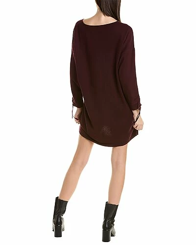 - Dolman Sweaterdress in heather wine with dropped-shoulders and cinched cuffs