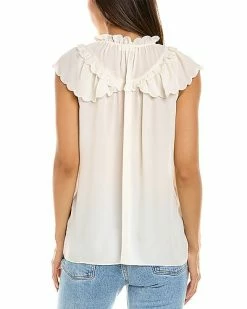 - Flutter Sleeve Blouse in ivory with mock collar and scalloped ruffle trim