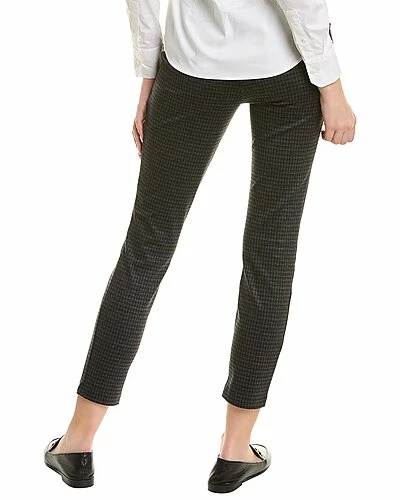 - High-Waisted Pant in grey houndstooth with skinny leg styling and elasticized streth waist band