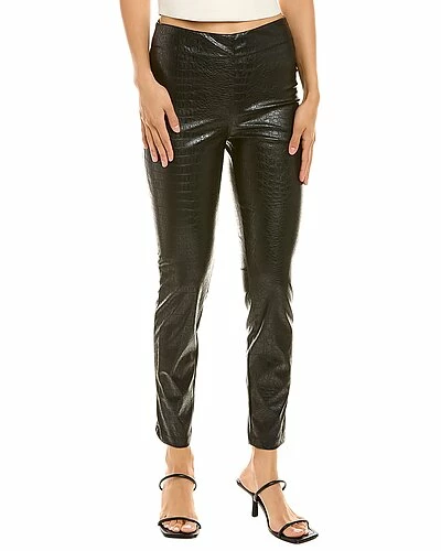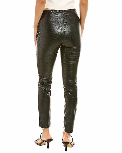 - Pant in black with croc-embossed texture, and elasticized waistband