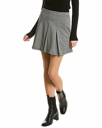 - Pleated Mini Skirt in black and white houndstooth with elasticized stretch waistband