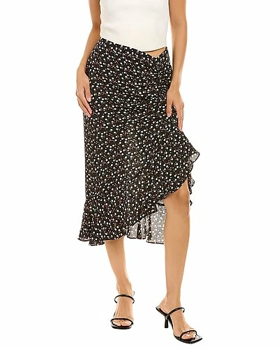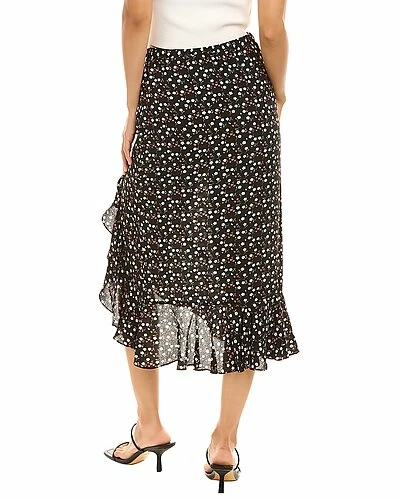 - Ruffle Midi Skirt in black & mauve mist sprinkle daisy with drawstring ruched front and ruffled tulip hem