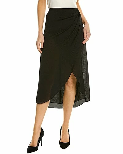 - Satin Midi Skirt in black with asymmetrical hem and left side slit