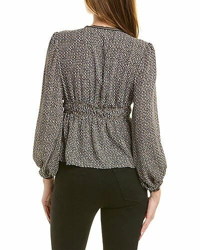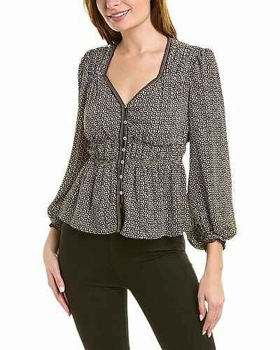 - Sweetheart Blouse in black and cream combo with elasticized bust, ruffle hem, blouson sleeves, elasticized cuffs
