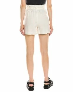 - Tie Waist Linen-Blend Short in white with paperbag waist, pleated front, and two front pockets