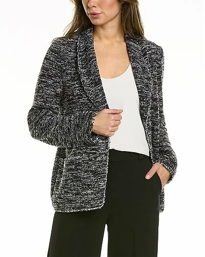 - Tweed Drape Jacket in black and white with shawl collar and two front pockets