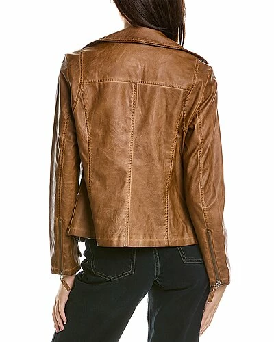 - Design details: faux leather design, notched lapel, two front zippered pockets and zippered cuffs