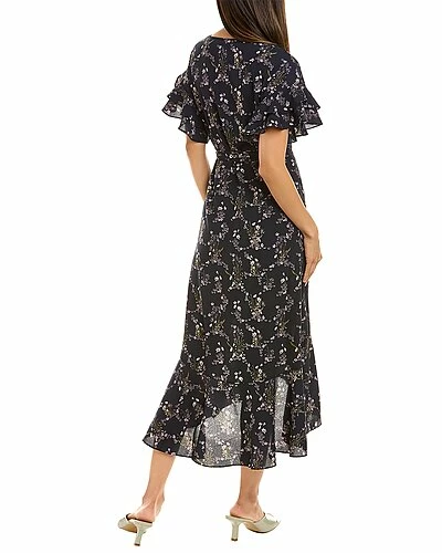 - Design details: bubble crepe design, flutter sleeves, ruffle trim, high-low hem